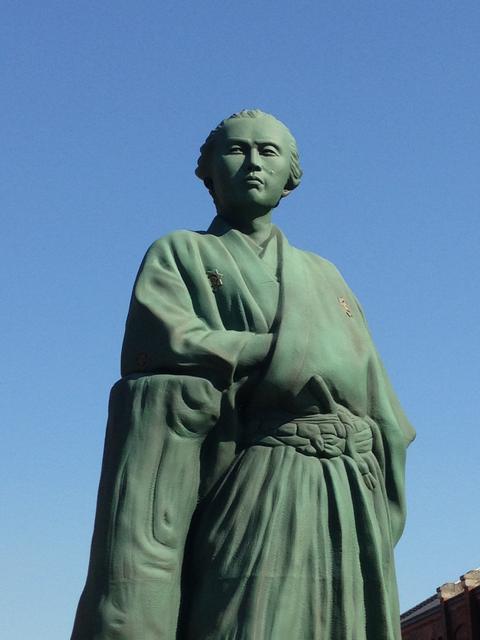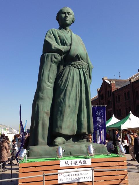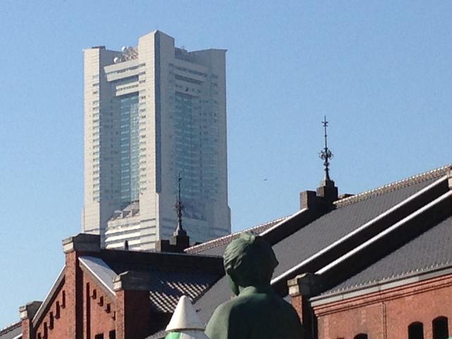 龍馬と赤レンガ倉庫とランドマークタワー。